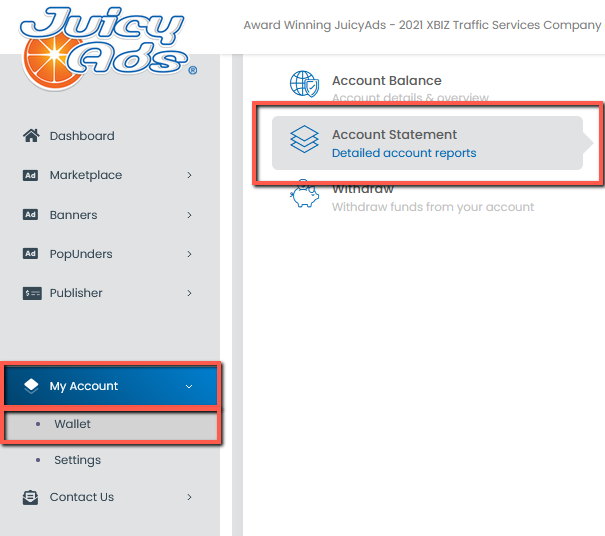 Account Statement: Within the "Wallet" menu, select the "Account Statement" option.